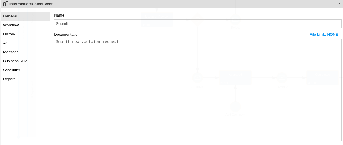 In the section General you provide basic information for the Imixs-BPMN Event element.