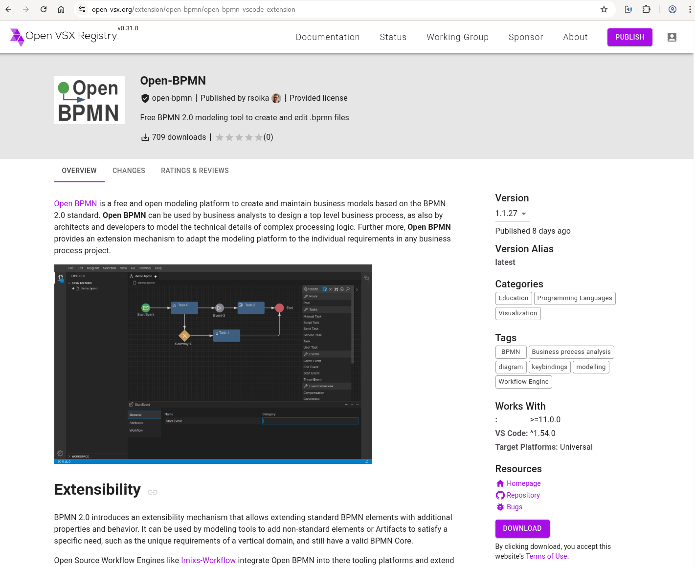 Note: The Open-BPMN extension is based on JDK 17. Please ensure you have Java 17 or higher installed on your system.